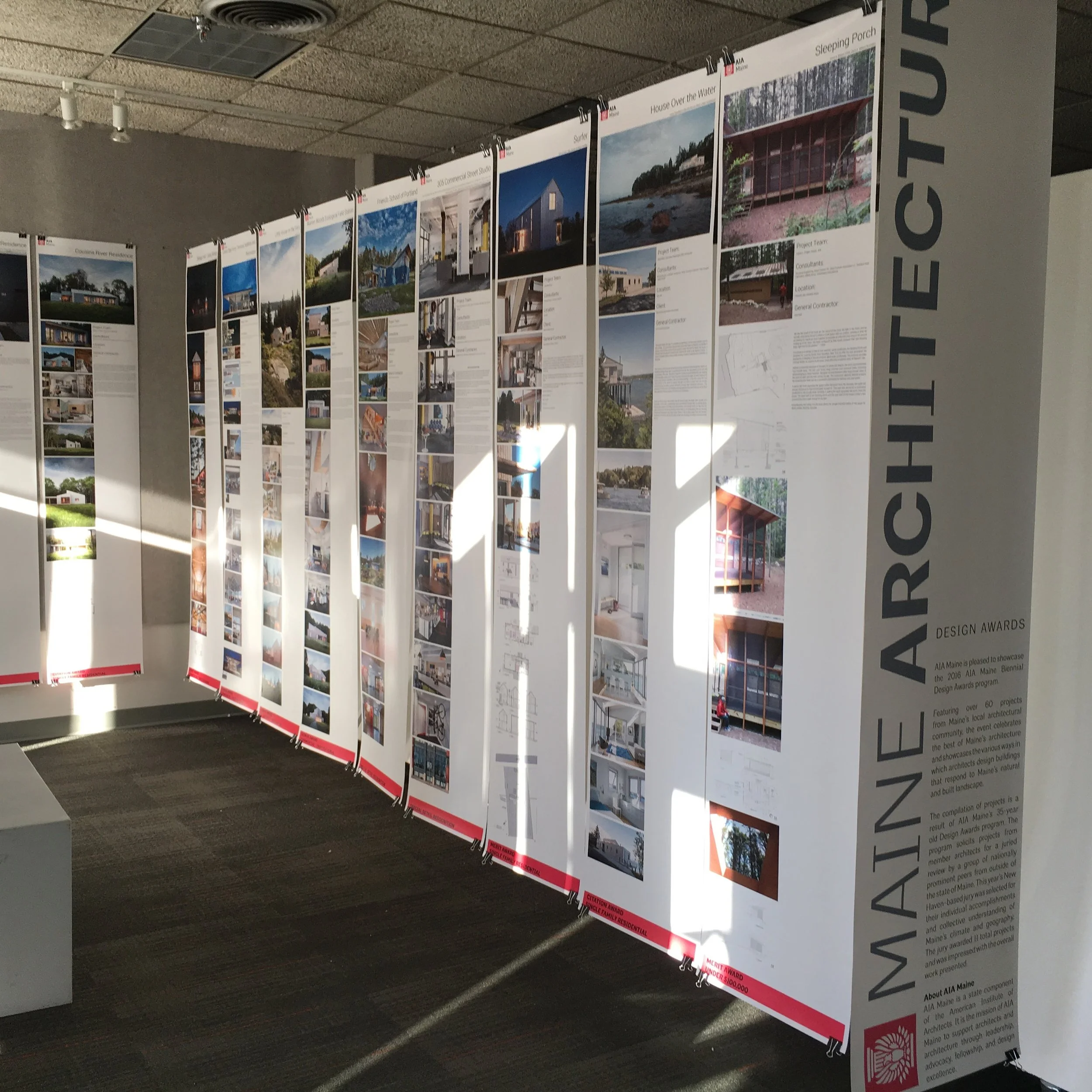 AIA Maine is pleased to partner with University of Maine at Augusta's Architecture Program to showcase the American Institute of Architects – Maine’s 2016 AIA Maine Biennial Design Awards. The exhibition is traveling throughout the state and is currently showcased at UMA's Water Street Gallery.